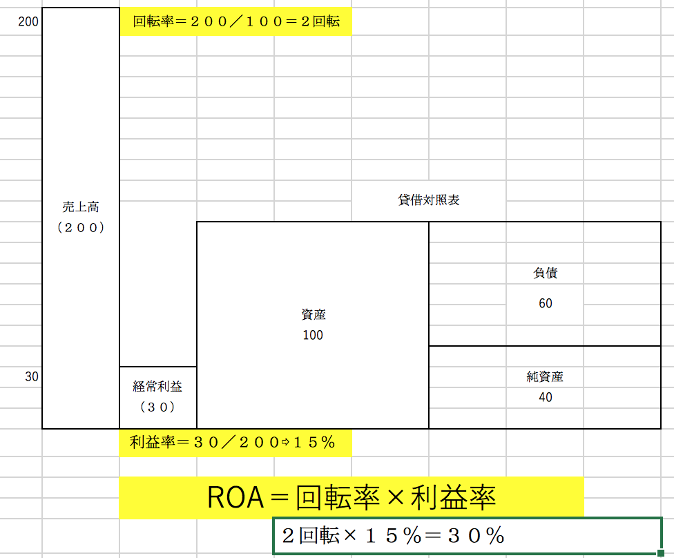 これがROA経営の回転率向上の法です。